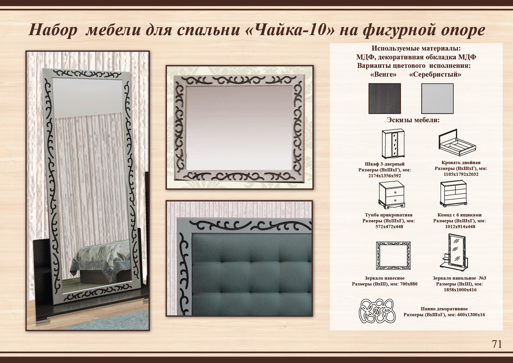Спальня Чайка 10 с целиком и в разбивку: : шкаф, кровать, комод, зеркало, тумба Модификатор цены:
